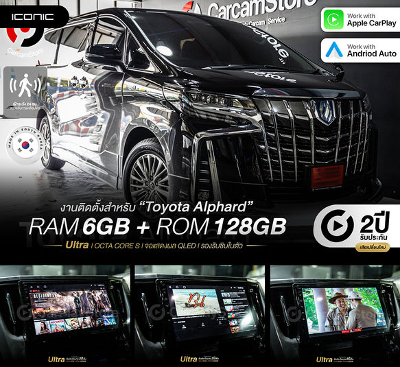 ชุดจอแอนดรอยตรงรุ่นสเปคสูงสุด รุ่นใหม่ล่าสุด RAM 6GB ROM 128GB ออกแบบมาสำหรับ Alphard&Vellfire โดยเฉพาะ มีการทำงานที่ลื่นไหลกว่าที่เคย รองรับการต่อออกจอเพดานด้านหลังได้